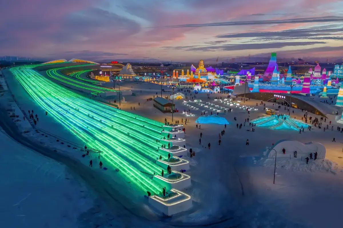 Harbin Ice and Snow World is located in Harbin City, Heilongjiang Province, and is a winter-limited ice and snow theme park! It opens annually from around December to March of the following year. Inside the park, you can find spectacular ice sculptures, snow sculptures, castles, as well as amusement facilities such as a Ferris wheel, ice slides, and ice mazes. At night, there is a dazzling light show. The wide range of activities makes it perfect for families, couples, and friends to enjoy the winter season together.