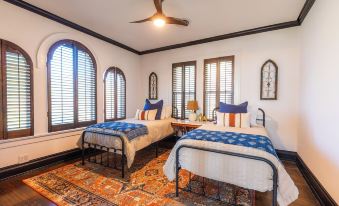 -Modern Spanish Revival Décor: The interior is thoughtfully decorated to transport you to a charming Spanish villa, blending historic charm with modern amenities.