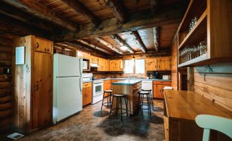 As you step inside, you'll immediately notice the stunning wood burning stove that radiates warmth and creates a cozy ambiance throughout the cabin. The living room is spacious and inviting, providing the perfect place to gather and relax with loved ones after a day of outdoor adventures.