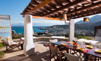 The property is situated in a peaceful and secure area with stunning bay views. The friendly staff ensures an unforgettable experience by providing top-notch hospitality. Easy access to Elounda's downtown is also a plus.