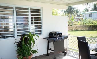 Fully furnished beachfront home on the 1st floor located on a private gated family lot at the end of a dead end. The two bedrooms include queen beds, ceiling fans and A/C. Enjoy relaxing in the hammocks on the front patio with palm trees and ocean breeze. You might be lucky enough to see a whale, dolphin or manatee. Also there is a gas BBQ and outdoor dining tables. The full kitchen is fully stocked to make all of your meals at home or you can walk to the local bakery or restaurants. Feel free to use the outdoor shower after visiting the tidepools or undeveloped mile long beach where you can fish, snorkel, swim, surf. We have boogieboards, surfboards, kayaks, SUP's and beach gear available for use. This house is centrally located on the west side of the island so it's easy to take daytrips north, south or central to explore caves, waterfalls, lighthouses. Downstairs is a separate apartment and we respect their privacy and desire for little to no noise as they will do the same in return. About pets:No pets allowed.About checkOut:Check out before 11:00 AM.About children:Children allowed: ages 0-17.About checkIn:Check in after 4:00 PM.About smoking:Smoking is not permitted.About minBookingAge:Minimum age to rent: 18.About events:No events allowed.