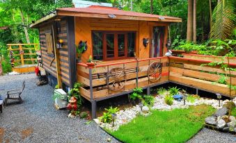 Escape to this tranquil jungle cabin in Rincón, Puerto Rico, where you can immerse yourself in nature and disconnect from the stresses of daily life. Tucked away amidst lush greenery, this cabin offers privacy, peace, and plenty of natural beauty. Fall asleep under the stars in the queen-size bed with the skylight above, listening to the sounds of the jungle and awakening to the songs of birds. You'll love cooking in the open-air kitchen and dining under the trees, and the outdoor bathroom is a unique touch that allows you to fully appreciate the tropical surroundings. Enjoy a relaxing soak in the outdoor tub, surrounded by nature, adding to the enchanting experience of your stay. At night, gather around the fire pit for s'mores and stargazing, or simply enjoy the serenity of your own private retreat. Whether you're seeking adventure or relaxation, this cabin is the perfect escape for couples or solo travelers looking to reconnect with nature. Book now and experience the magic of the jungle!About pets:No pets allowed.About checkOut:Check out before 11:00 AM.About children:Children allowed: ages 3-17.About checkIn:Check in after 3:00 PM.About smoking:Smoking allowed: in designated areas.About events:No events allowed.