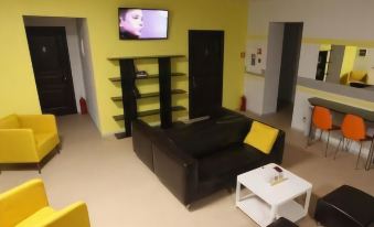 The hotel offers rooms of Economy, Comfort and Business categories. All rooms have air conditioning and a wardrobe. The Business rooms have a private bathroom with toiletries. The hotel has a shared kitchen and a TV viewing area. There is parking for travelers by car.