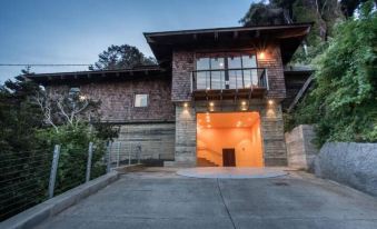 The last 200' to the driveway is a one lane gravel road. The driveway is a steep concrete driveway with a turntable at the top for a normal size vehicle (13' maximum wheel base). Large Sprinter type vans nor pickup trucks can use the turntable and will have to be backed down the driveway and there is a space below the property to do a three point turn to drive back up the road. No cars with trailers nor larger vehicles such as RVs will be able to easily access the property.About pets:No pets allowed.About checkOut:Check out before 11:00 AM.About children:Children allowed: ages 13-17.About customRules:A release is required to use the car turntable..About checkIn:Check in after 3:00 PM.About smoking:Smoking is not permitted.About events:No events allowed.