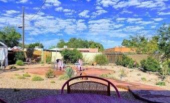 Absolutely lovely we will be staying here when we come to Abq from now on. She made fresh backed cookies and the house was adorable inside and out in the back yard. Yard landscaping and lounge atmosphere in the back was to die for. Birds chirping and flowers .