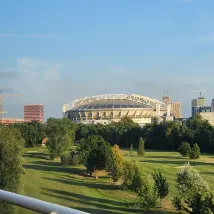 Jaz in the City is a modern, cool/hip music-themed hotel next to the Ziggo Dome and 5 mins walk from Bijlma Arena (station, shopping area, stadium). The rooms are well designed, I slept in a comfortable king-size bed, and there is even a sauna on the top (10th) floor! The breakfast is good and there is a great bar where you can also enjoy good quality basic bar food. There are also several good restaurants within walking distance.