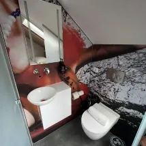 Beautiful and very unusual interior. However, because of the beauty, the comfort in the room suffers a little, for example, there may not be a wardrobe.