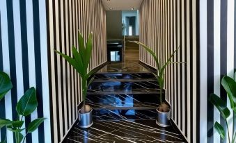 a cozy compact hotel. They managed to place a swimming pool and a small cafe on a small territory, and everything is very beautifully decorated. The staff is polite, speaks English. There is a place to park near the hotel, there are also many shops, a pharmacy, and a cafe. Of the minuses - there is no elevator, and low-flying planes may bother someone (but they did not fly at night, only during the day)