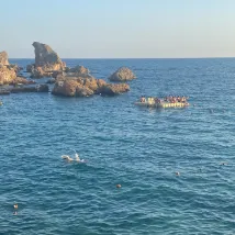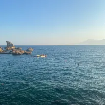The location is a real highlight. Just a 100-meter stroll downhill from the hotel leads to a spot with magnificent sea views. It's not a beach, but a picturesque docking area for yachts and small boats. The elevated view of the sunset over the sea with distant mountains is simply breathtaking.