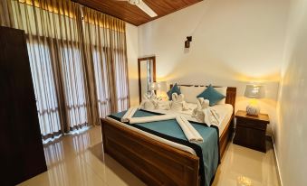 This charming hotel is a stone's throw (or a brief tuk tuk ride) from some of the ancient and spectacular temples dotted liberally around Anuradhapura. It offers a selection of bicycles for hire for energetic travellers (not me!). We were welcomed with open arms and a deliciously refreshing drink. Our bed was festooned with incredible towel art, which made us immediately feel at home. With a large terrace, kettle and fridge, we settled in on the spot. All the staff, but particularly the manager (guide!) and chef/waiter could not have been more friendly. Our every whim was catered for. They definitely went over and above. The owner should know what a credit they are to him...bonuses all round! As for the food - it was so scrumptious (and amazing value) that we ate at the hotel every night and some lunchtimes. Too good to miss! Highly recommend their Sri Lankan curries...yum! The pool is nicely landscaped and it a perfect size and temperature for swimming and lazing beside. Thank you so much! The Love Birds x