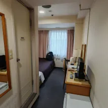 Good location with lots of buses, there is an ATM in the convenience store next door which is useful. The building is very old and the furnishings could definitely be replaced. There is no air conditioning, the hotel sets the temperature and you choose how much to open the vent. Unfortunately the seal on the window in my room was broken so I was very cold and there was a lot of road noise. The bed was comfortable but the lights in my room would flicker and overall I think the appliances need to be replaced. I appreciated the curry and rice but even the doors don’t automatically lock and I was a bit scared as I was a woman staying alone. It’s okay for the price but I think if they replaced the furnishings it would look a lot better.