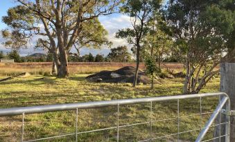 This is a true country gem. It is in a peaceful and tranquil countryside setting, yet still only 15 minutes from town. Plentiful wildlife including birds and roos. House was lovely and new, though no AC. Wood fired heat in living area. Kitchen was well equipped, lots of games and puzzles and even a few movies. The owner left a bunch of delicious apples for us too!