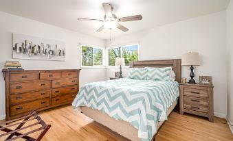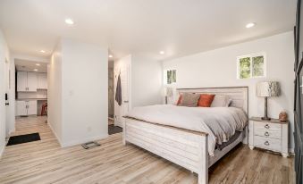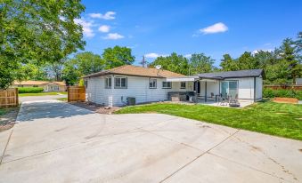 Beautifully updated 4 bed 3 bath home with large back yard, extended driveway, and lots of off street parking! Garage is not included. This 1800 sq ft ranch home features a beautiful open floor plan with back patio and LARGE outdoor space. There is a master bedroom on its own wing with large walk in shower, soaking tub, and double vanities. 3 other bedrooms are serviced by another modern remodeled hallway bath on the other end of the home. There is powder bath off the living area to make 3 separate bathrooms. The home has been recently remodeled with new windows, refinished natural hardwoods, new carpet, new beds, new paint, brand new kitchen, and plush master set up. The home has a fireplace and smart TV and dining table in the living room. There is 2 driveways and a large garage for storage and tons of parking. RV parking on the driveway is available. There is a large private yard. Large gardens coming Spring 2022.