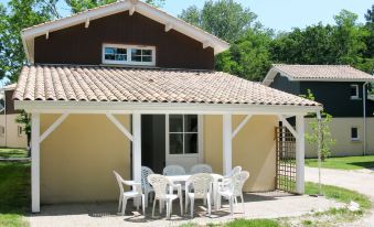 Child friendly resort "Les Rives de Saint Brice". 3 km from the centre of Andernos, 3 km from the centre of Arès, 50 km from the centre of Bordeaux, 10 km from the sea, 10 km from the beach. For shared use: natural state property 7 ha with lawn and trees, swimming pool, indoor pool fenced (12 x 5 m, seasonal availability: 01.Jan. - 31.Dec.). Children's pool, terrace. In the complex: reception, internet access, WiFi, fitness room, table tennis, washing machine, tumble dryer (for shared use, extra), bicycle rental. Parking (limited number of spaces). Shop 1 km, sandy beach "Bassin d'Arcachon" 800 m, swimming bay. Please note: car-free holiday complex. The photograph shows a typical example. The holiday properties may differ in living space, floorplan, equipment and furnishing. "Les Rives de Saint Brice", 4-room semi-detached house 70 m2 on 2 levels. Bright, practical furnishings: living/sleeping room with 1 sofabed (80 cm, length 190 cm), 1 pull-out bed, dining table and TV can be hired. Exit to the terrace. 1 room with 1 french bed (140 cm, length 190 cm). 1 room with 2 beds (80 cm, length 190 cm). Open kitchen (2 hot plates, dishwasher, toaster, microwave, electric coffee machine). Bathroom, sep. WC. Upper floor: 1 room with 1 french bed (140 cm, length 190 cm), bathroom. Bathroom, sep. WC. Electric heating. Terrace. Terrace furniture. Facilities: children's high chair, baby cot. Internet (WiFi, extra). Please note: non-smokers only. Maximum 1 pet/ dog allowed. Smoke alarm. The property is one of a type of property or apartment.