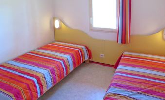Child friendly resort "Les Rives de Saint Brice". 3 km from the centre of Andernos, 3 km from the centre of Arès, 50 km from the centre of Bordeaux, 10 km from the sea, 10 km from the beach. For shared use: natural state property 7 ha with lawn and trees, swimming pool, indoor pool fenced (12 x 5 m, seasonal availability: 01.Jan. - 31.Dec.). Children's pool, terrace. In the complex: reception, internet access, WiFi, fitness room, table tennis, washing machine, tumble dryer (for shared use, extra), bicycle rental. Parking (limited number of spaces). Shop 1 km, sandy beach "Bassin d'Arcachon" 800 m, swimming bay. Please note: car-free holiday complex. The photograph shows a typical example. The holiday properties may differ in living space, floorplan, equipment and furnishing. "Les Rives de Saint Brice", 3-room house 40 m2. Simple and practical furnishings: living/sleeping room with 1 sofabed (80 cm, length 190 cm), 1 pull-out bed, dining table and TV can be hired. Exit to the terrace. 1 room with 1 french bed (140 cm, length 190 cm). 1 room with 2 beds (80 cm, length 190 cm). Small, open kitchen (2 hot plates, dishwasher, toaster, microwave, electric coffee machine). Bath/WC or shower/WC. Electric heating. Terrace. Terrace furniture. Facilities: children's high chair, baby cot. Internet (WiFi, extra). Please note: non-smokers only. Maximum 1 pet/ dog allowed. Smoke alarm. The property is one of a type of property or apartment.