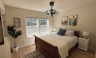 4 bedrooms: 3 bunk beds 1 queen bed and 1 king bed