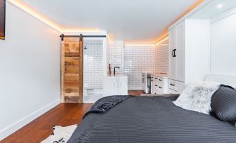 Ajax views and river patio! Newly remolded with King Murphy bed!