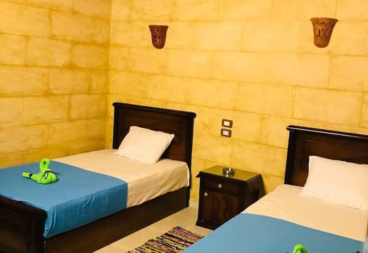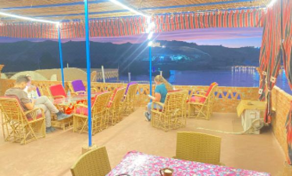 If you choose this Guest House you'll live among Nubian houses on the west side of Elephantine Island. You commute to Assuan by ferry (about 10 minutes' walk away from Labib guest house, 15 EGP per ride), but your host, Mohammed, will send a boat to meet you when you initially arrive and even arrange a taxi transfer from the airport ( the latter for a fee). What I liked best about the house was the deck, where you have breakfast or can watch the sunset. You sit under a reef roof in the open and have a view of the Nile and the desert hills opposite you. Very calming and quiet! The room I was in was clean with basic furniture and amenities. Mohammed was very helpful and arranged for me to go to Abu Simbel in a minibus and to Luxor in a taxi at short notice. He has good connections to the tourist industry and is very helpful. His wife is equally friendly and welcoming. If you have time, I recommend a boat ride across the Nile and a short walk up to the ruins of the Coptic monastery and a subsequent visit of the Botanical Garden situated on a nearby island. I also enjoyed visiting the open-air weaving workshop near Labib Guesthouse. The Mövenpick Resort on Elephantine Island, about 20 minutes' walk away, on the other hand, shows you a completely different world with carefully manicured lawns, flowers and staff in uniform!