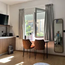 The room has a kitchen and cooking utensils, so you can cook. There is a small supermarket called My Market, which sells vegetables, 3 minutes' walk away. You can see the night view of the Acropolis from the rooftop. There are many free parking lots in the alleys around, but they are often full. It is 7 or 8 minutes' walk from the two ticket points of the Acropolis and 500 meters from the nearest subway station. Thanos at the front desk provided good service and answered all questions. When turning on the central air conditioner, all doors and windows must be closed, otherwise it will not work, and I thought it was broken.
