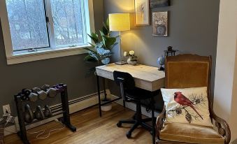 We are a very family and pet friendly home! Lots of books for adults and kids, a small game table, board games, and our outdoor fire pit has been a big hit in the appropriate weather. We also supply a couple sleds you can take with you to use, or there is a small hill out front we used to love! There is a swing set and trampoline out back to use when it’s warm, a hammock between the trees by the barn, and a grill with a table set up on the back deck. We also supply a dog run that’s attacked to our deck for your furry friends, dishes & poo bags. No weight limit on dogs, we love them all & hope you will watch after them as you would in your own home!