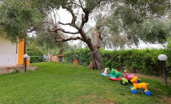 The villa is surrounded by a large garden, where olive trees frame and each individual apartment has its own private green area with veranda, and a shared green area with a playground for the little ones.