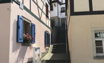 Our cozy holiday apartment "Zaukennest" is located in the 3. Floor of our half-timbered house from the year 1910. It has a separate entrance and is accessible via an external staircase. The house is in 2. Row on the slope above all other houses and is accessible via several steps.