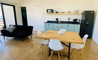 The Owl (Buho) apartment is perfect for a couple or small family. There is one bedroom with a queen size bed and a twin bed, with a mountain view. There are two single sofabeds in the living room/kitchen.