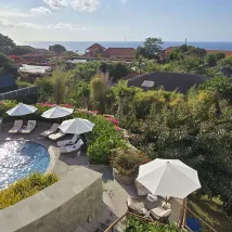 Beautiful resort on cliff with own beach, stunning view at Rock Bar, excellent breakfast, smiling staff and well designed pools. Highly recommended.
