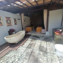 The villas have open air bathrooms but it’s clean and no insects 🕷️