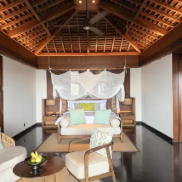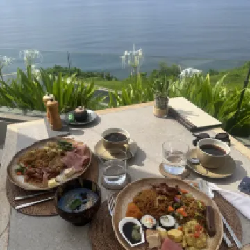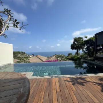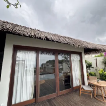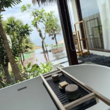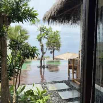 We booked a sea-view villa with a private infinity pool that was the perfect size for a dip. Sitting in it and watching the sea and sunrise was absolutely amazing. The room was very spacious, and the bathroom even had a bathtub, plus two outdoor showers. The overall privacy of the room was excellent; even though it was fully booked during New Year's, we barely saw any neighbors and it was very quiet.