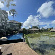 We loved everything about this hotel. We stayed at a villa with a pool and it was really good because my son used the pool every single day. The bed was very big with a mosquito net over it which helps a lot. Bathroom big with a bathtub. Breakfast was always very tasty. The hotel is a rice field which gives such a nice Indonesian vibe. Staff was incredibly polite and helpful. They even repaired my sons wooden car (thanks to Robi). Finally the kids club was very beautiful but lacked some toys, however there were bunnies and sheeps to feed which was my son’s favorite daily task.