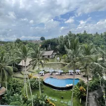 This hotel creates a deeply relaxing atmosphere with its serene surroundings. The breakfast is delightful, enhanced by a beautiful view and soothing gamelan music.