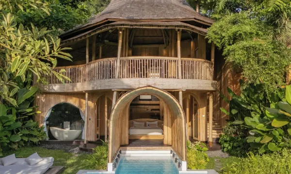 Environment and Location: The hotel is set in a beautiful and peaceful jungle environment with stunning views, offering an immersive nature experience. The bamboo villas blend well with the lush surroundings, providing guests with a unique stay amidst nature.