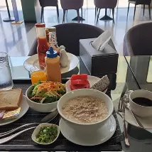 The room itself was compact but clean and was function able. There was no restaurant in the hotel but they allowed you to order online delivery and have plenty space in lobby for eating.