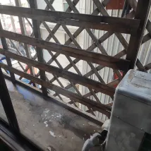 Dangerous wooden lattice to the outside 'balcony' that if leaned upon would easily give way.