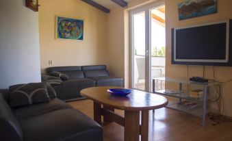 Our largest apartment B is on the second floor. It is a very large apartment. It is great for 4 people. The apartment has 2 bedrooms, living room with adjoining balcony with fantastic sea views and a kitchen. One of the two bedrooms has Airco (optional 4 euros per day) and has a balcony with a view of the sea.