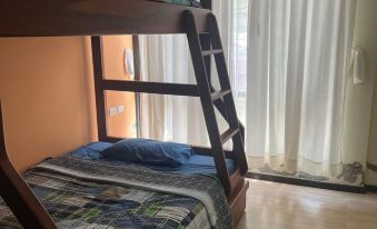 3 bedrooms: 1 bunk bed 1 single bed and 2 double beds