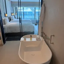 Hotel Arts Barcelona is an independent brand operated by Ritz-Carlton. Everything feels brand new. It is right next to Barcelona Beach. The scenery is very good. The rooms are large and the hotel staff are very welcoming.