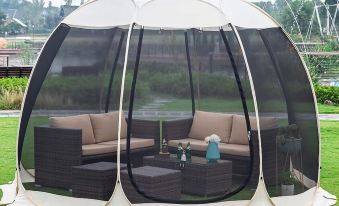 Outdoor Igloo Dome: Sit inside this unique transparent lounge space—magical in all seasons!