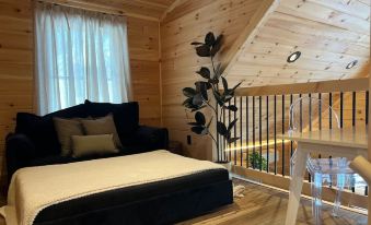 Upper Loft: Open Queen Bedroom with Closet & Dresser, Study Area with Queen Pull-Out Sofa, Full Bath.