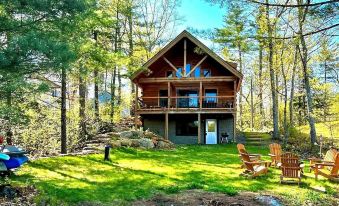 Escape to this stunning new log cabin on Huntress Pond in Barnstead, NH! This peaceful lakefront retreat offers direct water access for swimming, kayaking, and fishing from a private dock. Just minutes from Lake Winnipesaukee, this modern yet cozy getaway is perfect for families, blending rustic charm with contemporary comfort. Enjoy tranquil waterside living while staying close to scenic hiking trails and top ski resorts, making it an ideal year-round escape. Relax by the fire pit, explore nature, or unwind on the deck—book your stay today and create unforgettable memories!