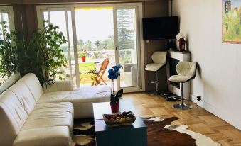 Joannic is very welcoming. There is a great outdoor seating area to enjoy the beautiful view. Location is perfect as it is close to the bus, train, Super U grocery store and restaurants. The unit is very functional with a well stocked kitchen. There is AC throughout the unit and a washer/dryer.