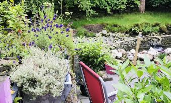 When it’s time to rest you can sit in the garden next to the river and listen to the water and nature.