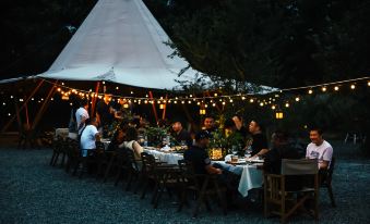 獨特的體驗 大帳篷住的還是蠻愜意的 獨立衞浴好評!寵物友好100分!旁邊還有現做的簡餐~挺好的!唯一就是4月初入住的,土很大