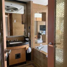**Surroundings:** The area around the hotel is bustling, right next to major shopping centers like New World, SKP, and China World. There are tons of options for food delivery, and the service was quick. Plus, they have robots that deliver right to your room, which was a fun and practical touch!