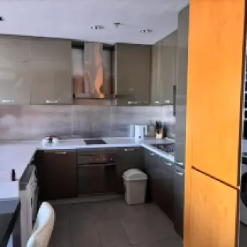 I really like the two-bathroom room; it's so convenient when traveling with family. The semi-open kitchen is cozy and fully equipped. I love it!