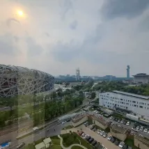 Location - real close to the Stadium; Security - nice lock system; Receptionists - all nice, especially "Wang, Fu Qiang" 王富强 (服务非常优秀,方案彻底又有效率) very attentive, professional and efficient - helped me to get takeout order as lunch after unavailability of room service of beef noodles; deduct one star for the breakfast buffet - bus boys clear tables fast, yet the waitress/waiter not friendly as to my inquires, e.g. unavailability of coffee spoon, absence of regular size coffee cup/mug, absence of breakfast tea bags, and unsolicited table sharing. The breakfast buffet is a convenient option for travellers, not a sampler representing local cuisine. The hotel use a cute robot to deliver items to the suite on demand - that was entertaining. The coffee and tea shop at the lobby is a bit pricy if you are only looking for non-branded beverage. View - I stayed at high floor and could see the entrance of the "Nest" the stadium plus a corner of the famous Concrete Nest structure - very charming in the evening. The hotel is nice for travellers who can handle a bit of mandarin.