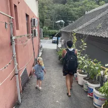 Nice stay very close to the wall. There is a Chinese restaurant right at the front of the property if you want Chinese or about a 15 minute downhill walk to shopping area with pizza hut and burger king. We walked down but decided to take a ride back up because it is all uphill. Kids enjoyed having their own little space upstairs and host was polite and helpful. Would stay here again.