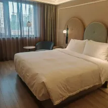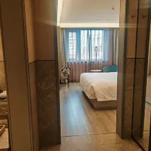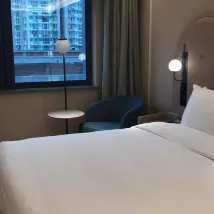 The hotel is excellent, conveniently located near the Olympic Sports Center with a station right outside. The main entrance features large, automatic sliding glass doors, which give it a very upscale and modern feel. Stepping inside, you're immediately greeted by a perfectly comfortable temperature and humidity. A friendly front desk attendant proactively greeted me and warmly offered iced beverages or mineral water. The lobby lounge area offers a selection of hot and cold drinks, as well as canned beverages, and the seating and tables were all very clean and tidy. Check-in was incredibly quick. (PS: They even proactively call guests on the day of arrival to ask for their estimated arrival time and prioritize room allocation for that slot, which is incredibly thoughtful!) The room itself was spacious and tidy, and the mini-bar offered complimentary snacks and drinks. The Xiaodu voice control system was convenient. The smart toilet was incredibly comfortable, and the Toshiba TV offered truly high definition. Overall, the stay was excellent, and I would definitely return if I have the opportunity. Just a minor suggestion: the hairdryer could be upgraded to a slightly better model, as it took a bit long to dry my hair. Haha.