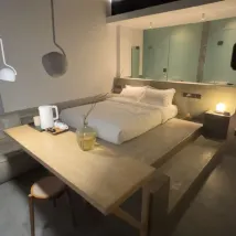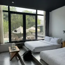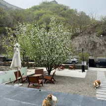 I enjoyed this hotel so much ! It’s a bit away from the crowds that’s why you can enjoy the atmosphere of being in the mountains . The room was cosy and had an interesting design ! Bed was comfortable and cafe outside was cosy too ) two sweet doggies live there and you can enjoy petting them any time you wish ) the view from the roof was amazing and you could enjoy watching the Great Wall while sitting on the chair among the water on the roof 🥰 Shuiguan Great Wall was just 5 minutes away from the hotel ! I enjoyed climbing it , there were almost no people and It gives you an amazing feeling of being one -on -one with the nature and the wall! ❤️ the only thing I didn’t like - there was a smell in the bathroom . And when man in the next room started shouting in the evening - I could hear it very well! Because the walls in the hotel are sin. Nice guy in the reception immediately helped me to solve this problem - he wrote to my neighbours and they stopped creaming 🙏 all in all I liked this place and hope to come back one day ! thank you for the wonderful stay ! 🙏❤️